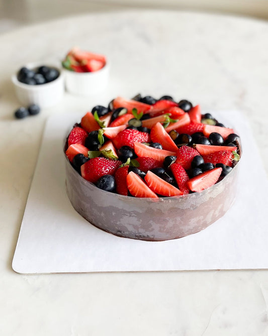 CHOCOLATE CAKE TOPPED WITH BERRIES