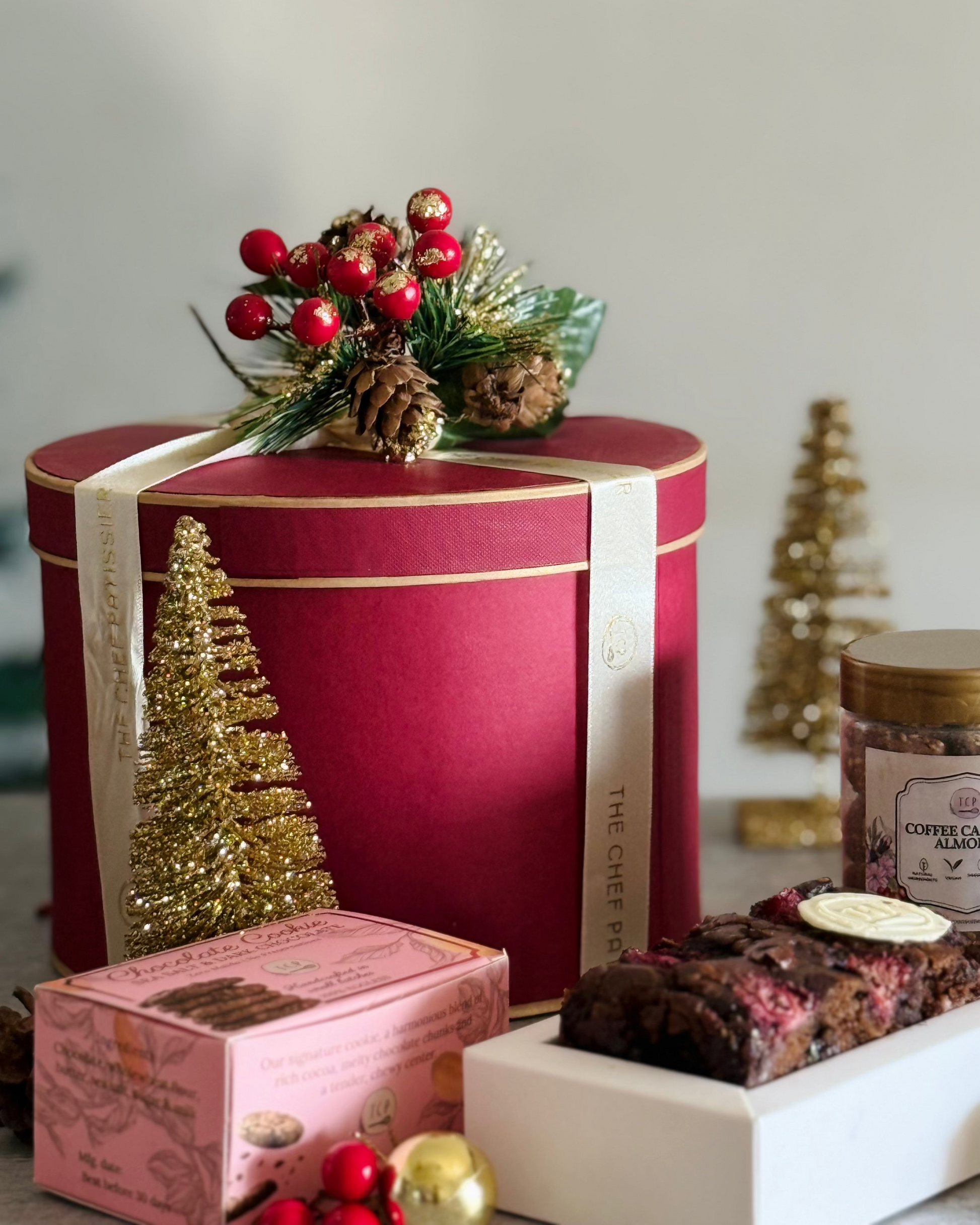 Share the magic of the holidays by gifting our Christmas hamper to loved ones or indulge in its festive splendor yourself.
